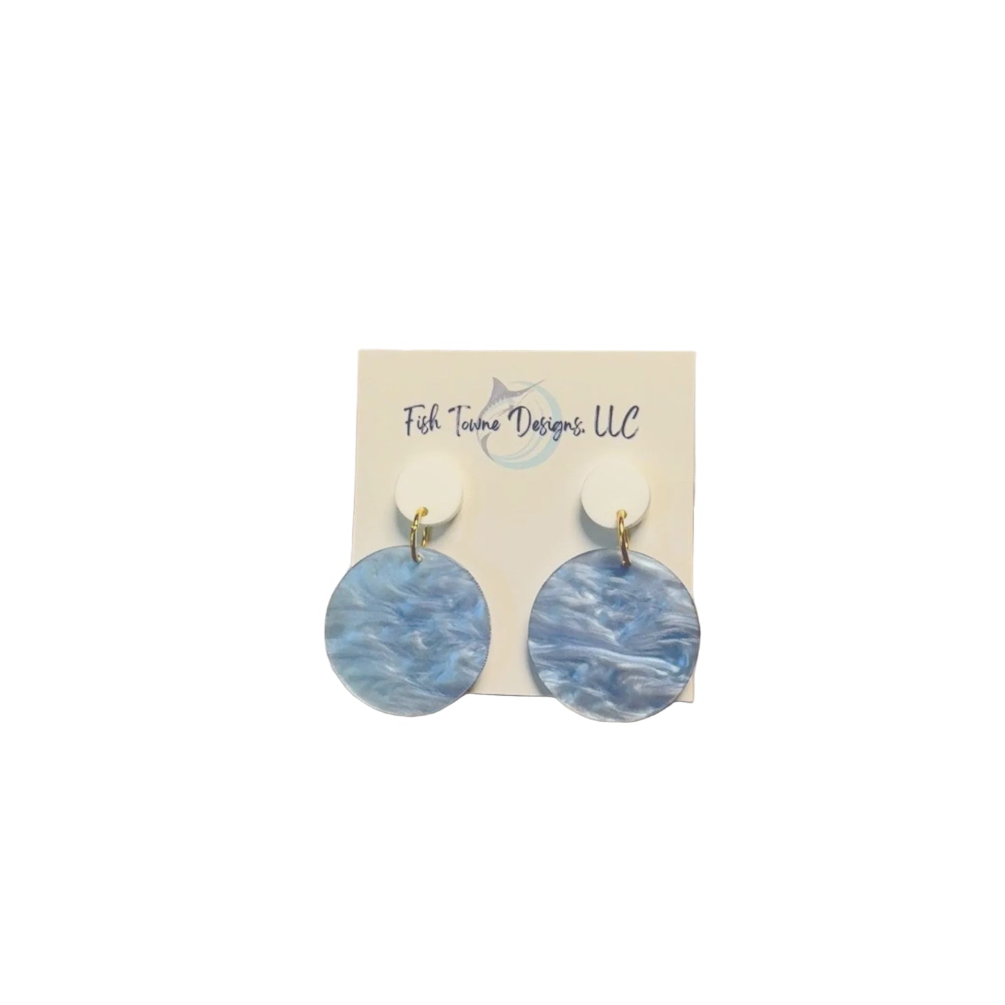 Light Blue & White Acrylic Game Day Earrings- LARGE