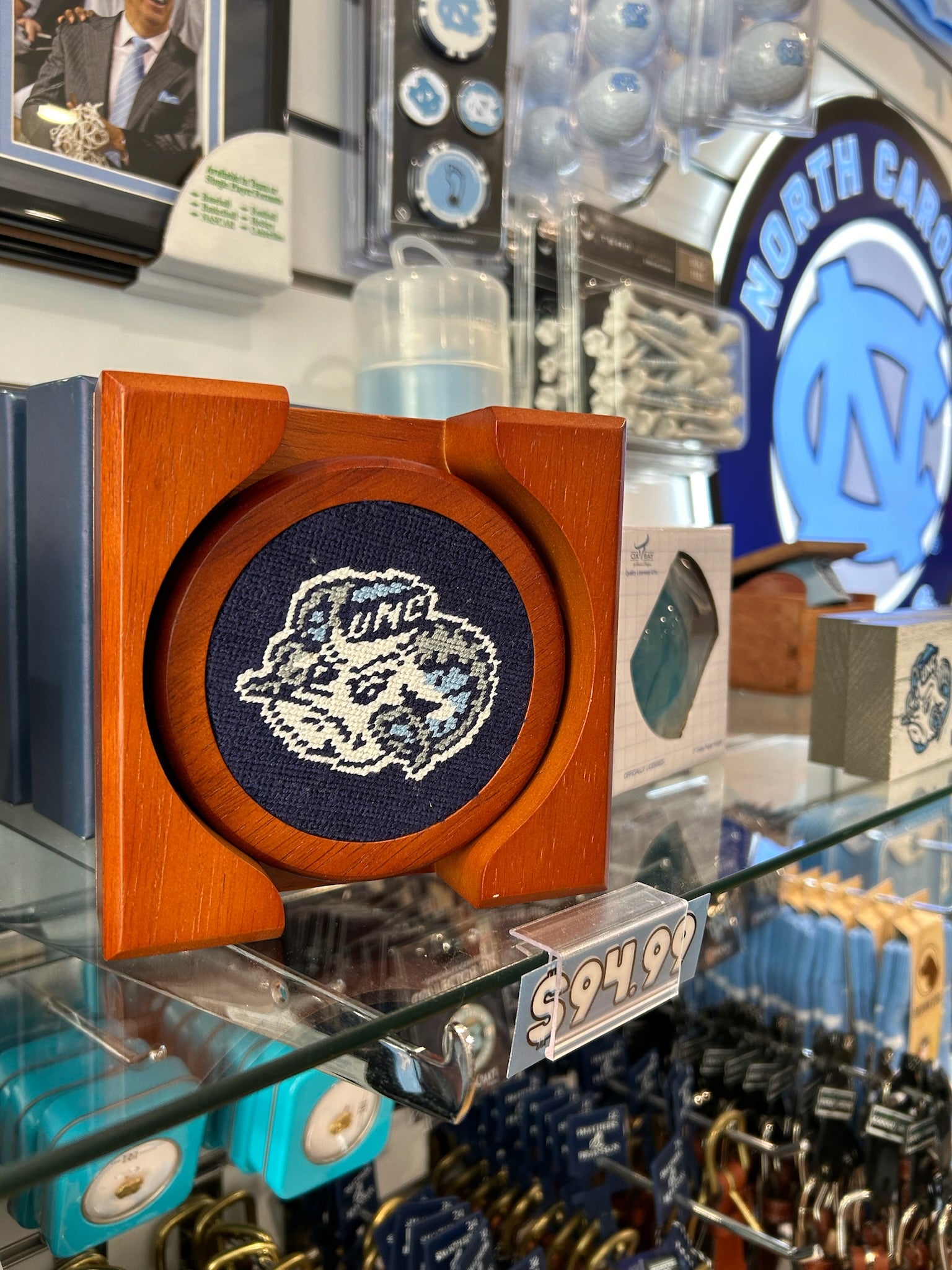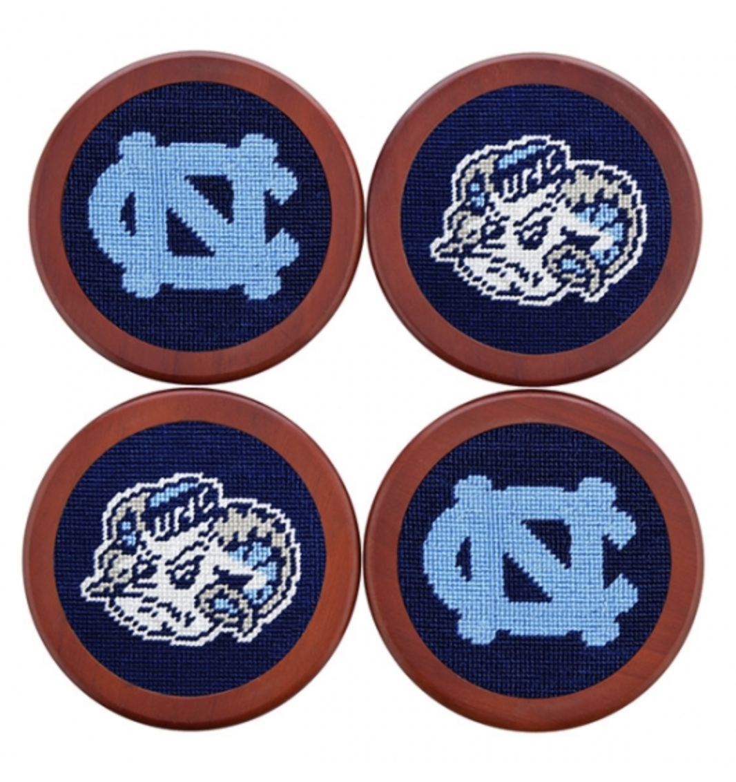 North Carolina Dark Navy Needlepoint Coaster Set by Smathers and Branson