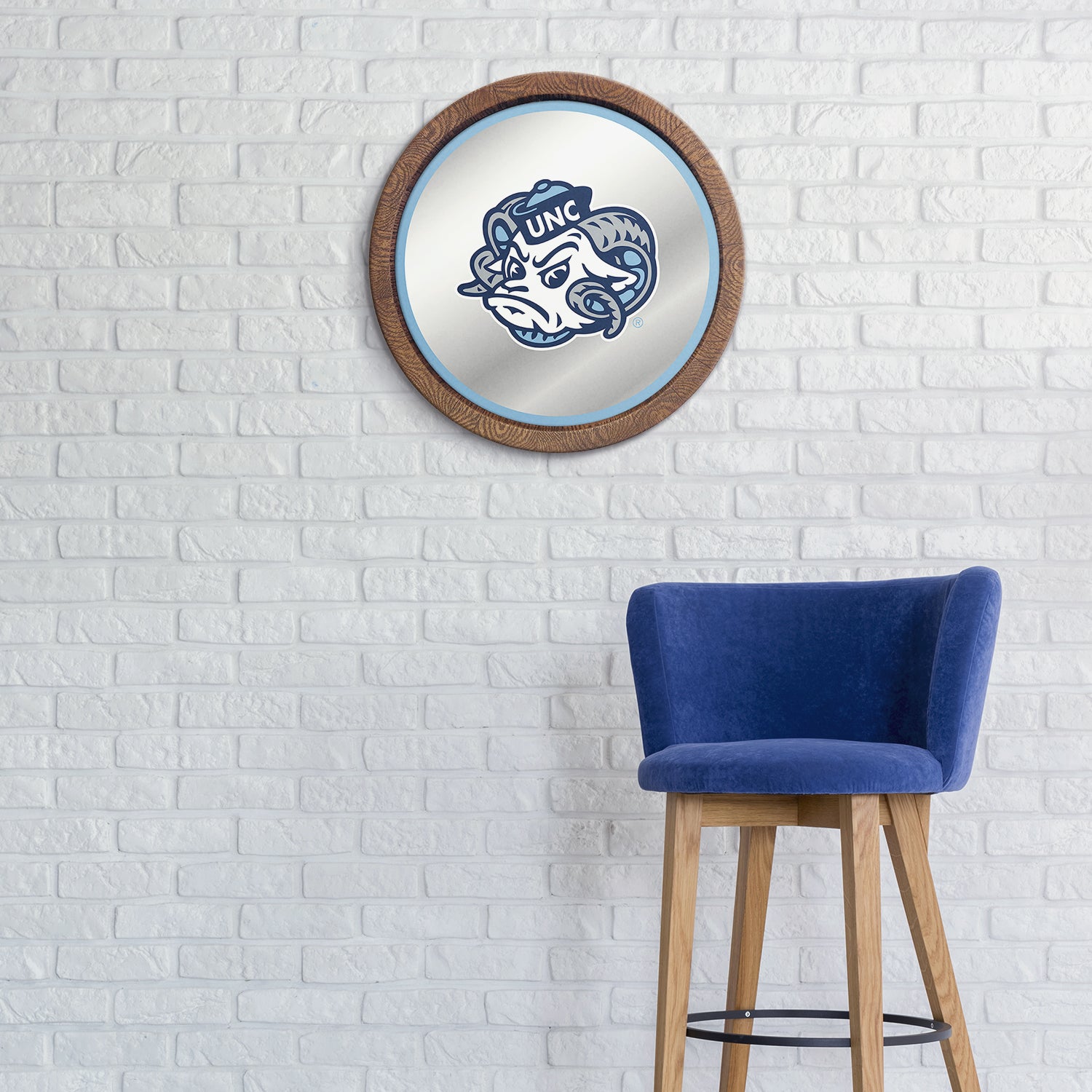 North Carolina Tar Heels: Mascot - "Faux" Barrel Top Mirrored Wall Sign Carolina Blue Edge