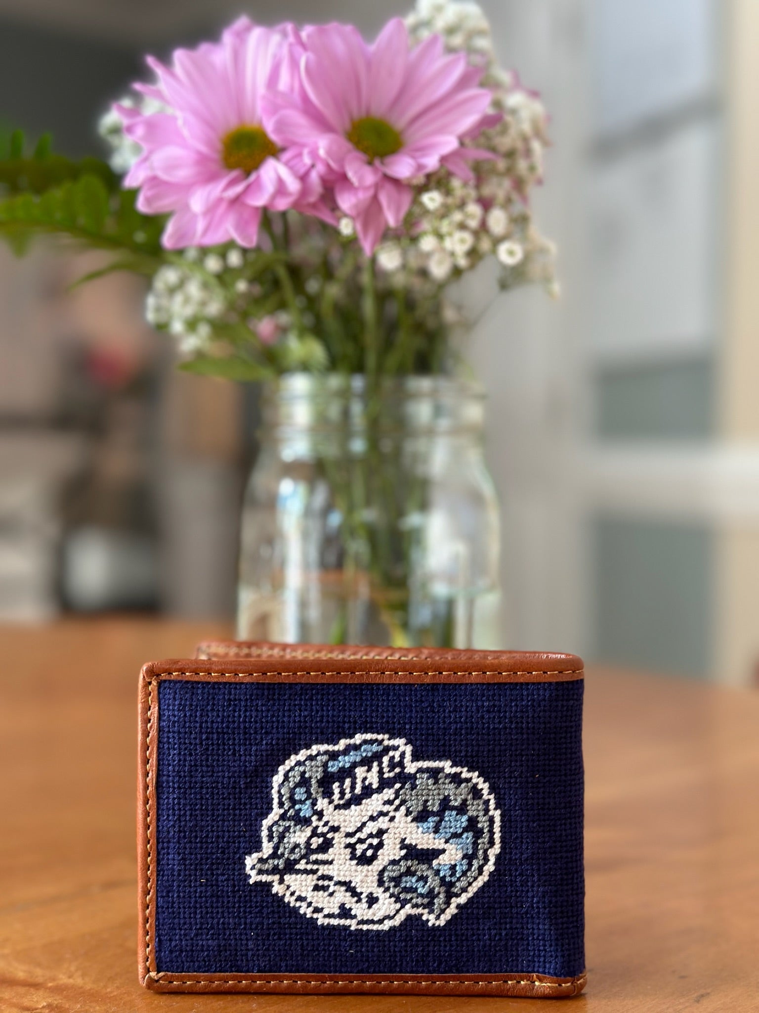 North Carolina Tar Heels Navy Needlepoint Wallet by Smathers and Branson