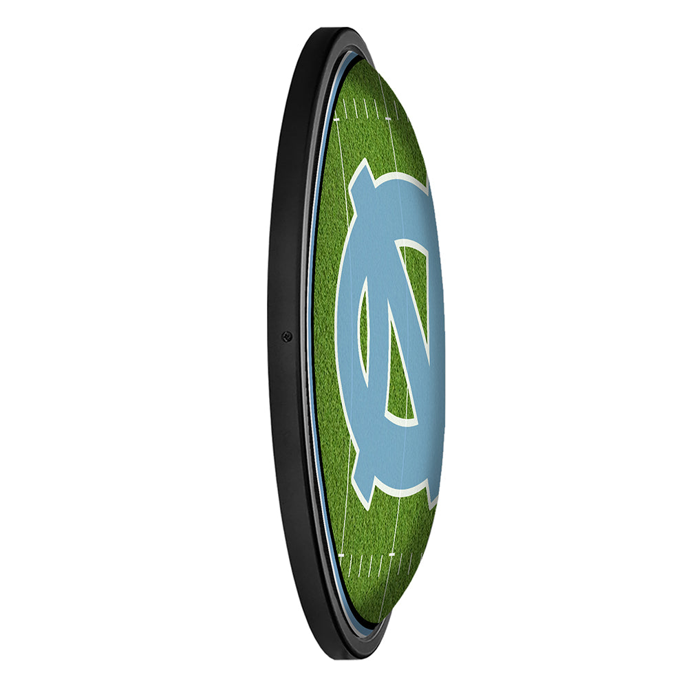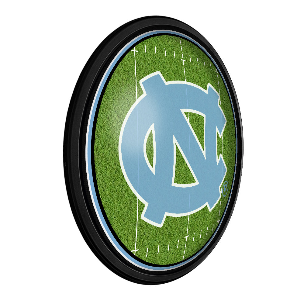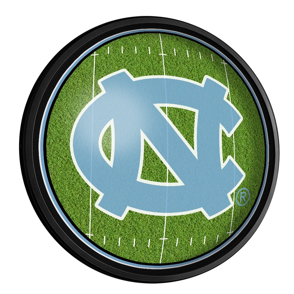 Our North Carolina Tar Heels "On the 50" Slimline Lighted Wall Sign is the perfect modern styled sign for any wall. Whether it's your fan cave, office, game room, garage, or dorm, this decorative light with it's football field design is the perfect way to show your love for the Tar Heels. Its high resolution digitally printed face provides a photographic quality image with a high gloss finish. It is illuminated with the latest in LED technology and only uses 12 volts, making it perfect to bring with you to tailgate or in your homegating headquarters. It comes with a 6 foot power cord and an in-line switch. Mounting hardware included. This is an officially licensed product of the University of North Carolina and is made in the USA.