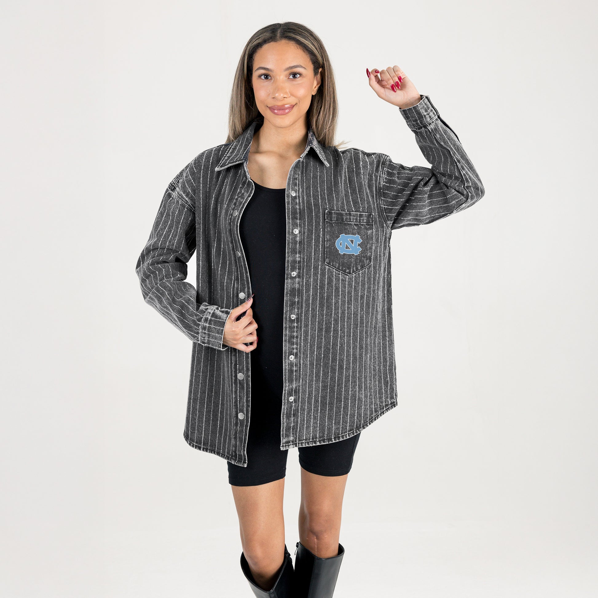 North Carolina Tar Heels Rhinestone Black Denim Overshirt