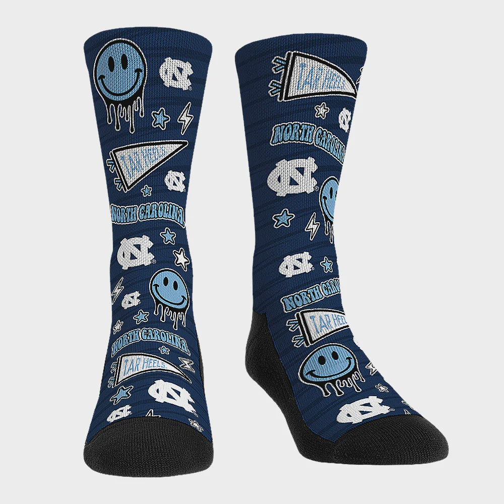 Come game day, nothing gets you more in the mood then donning a complete North Carolina Tar Heels outfit. Rock these UNC retro sticker graphic socks by Rock em Socks for a fun way to kick your fandom up a notch. Featuring bold, woven graphics and a comfortable fit, these socks will have you feeling like a full-fledged UNC Tar Heels fan.