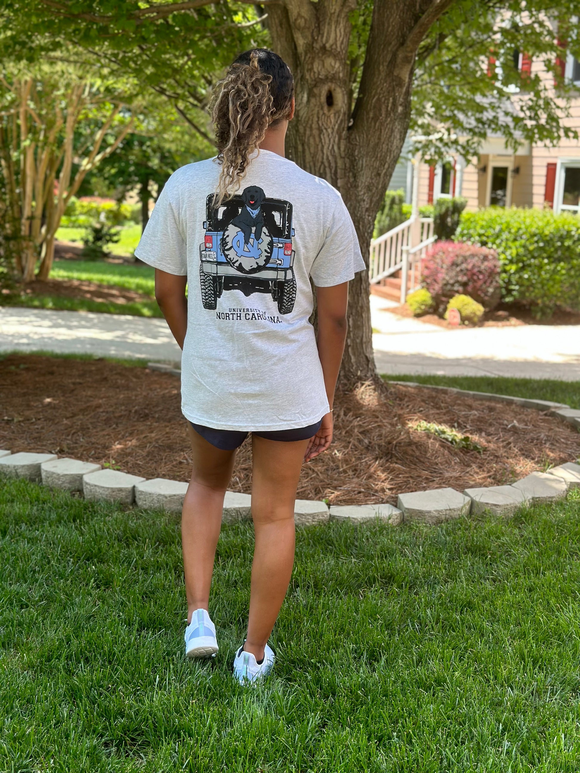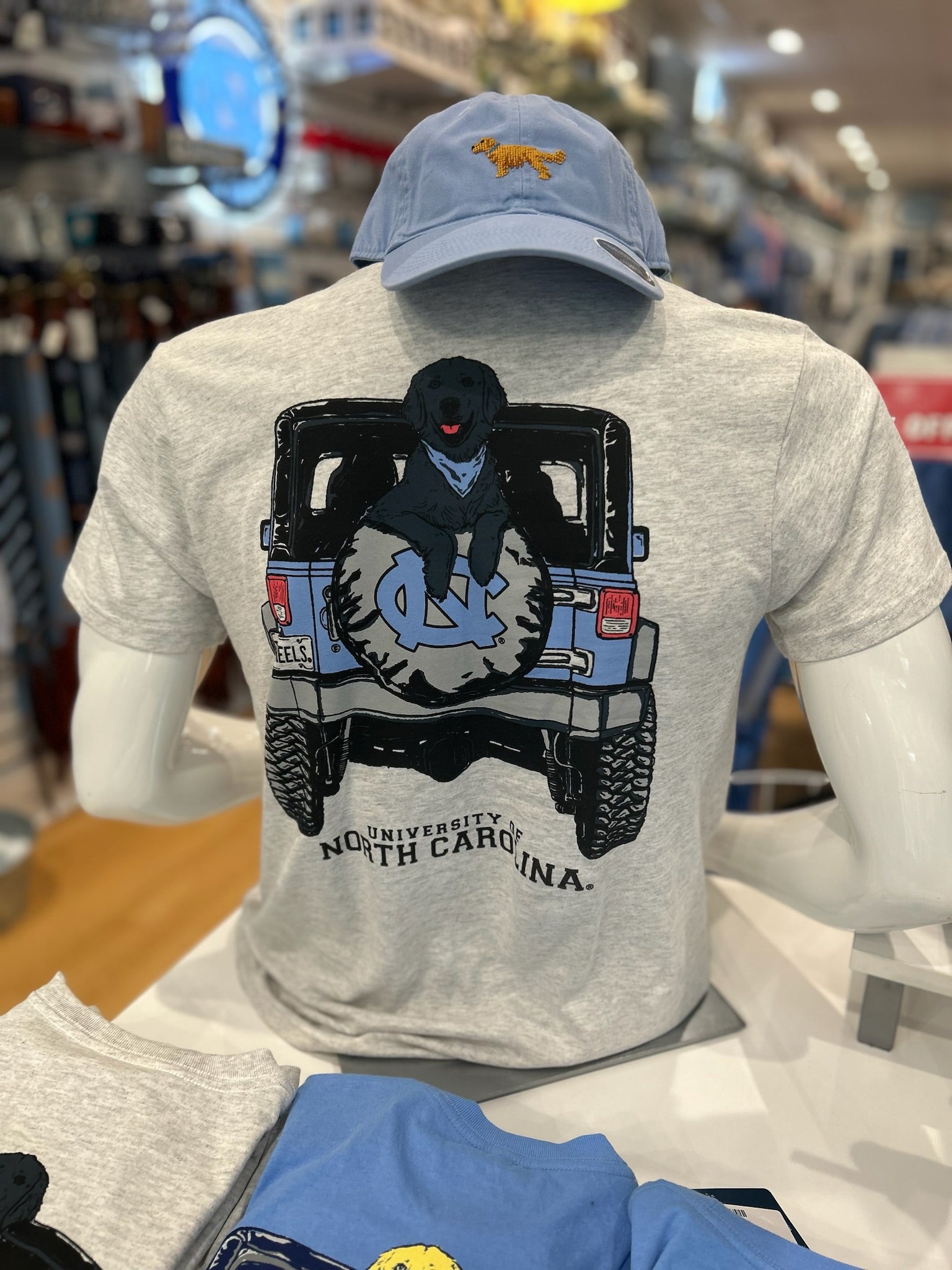 Carolina Tar Heels T-Shirt with Black Dog in Jeep