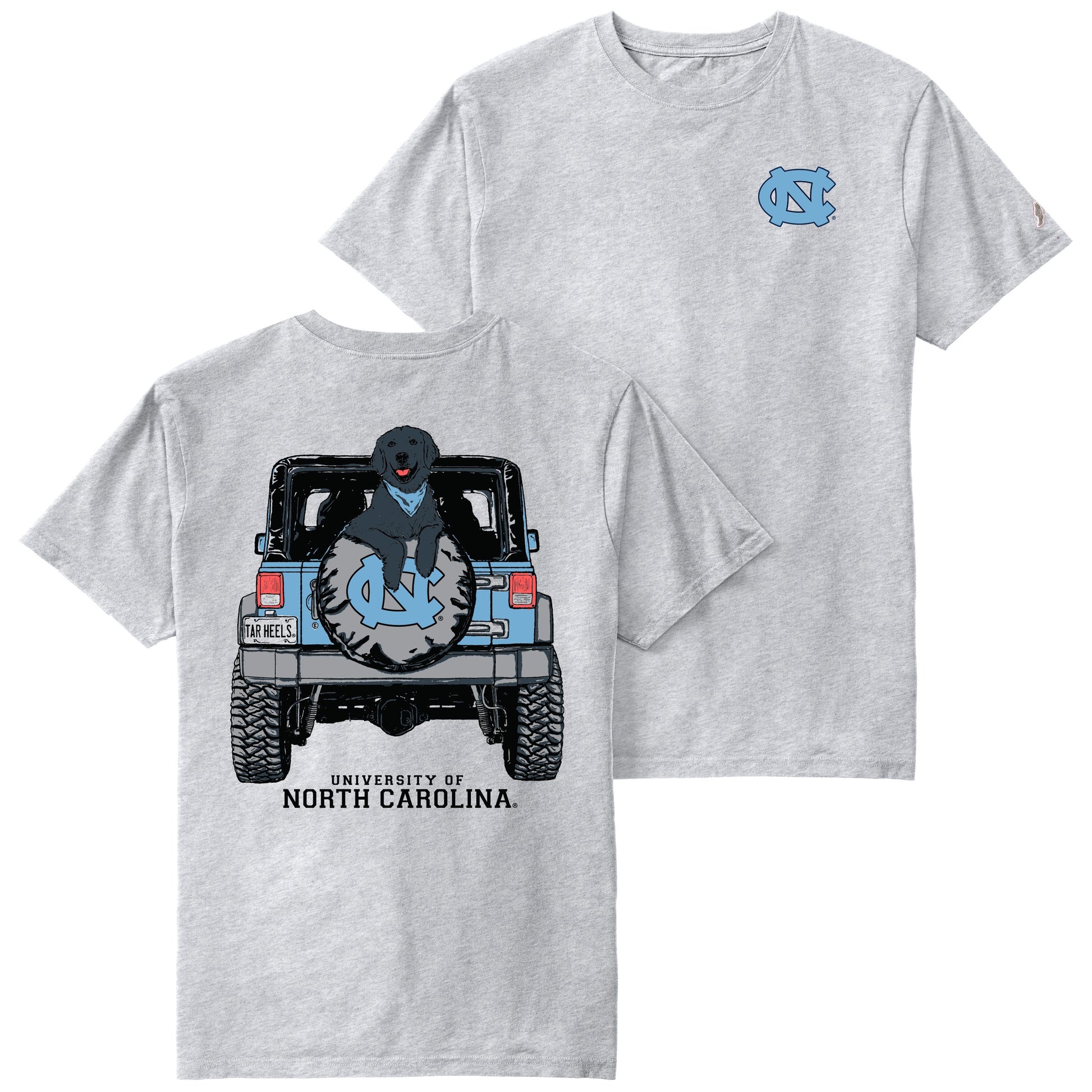 North Carolina Tar Heels T-Shirt with Black Dog in Jeep