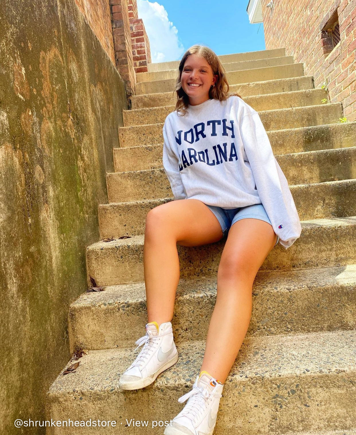 The best of the best, this Champion Reverse Weave sweatshirt is known among fans as the Cadillac of Crewneck Sweatshirts, in stunning silver ash grey with officially licensed North Carolina logo large across the chest, this UNC Sweatshirt is the ultimate collegiate crew for any student, alumni, or fan of the University of North Carolina. Represent your favorite school in this ultimate sweatshirt, the Champion Reverse Weave Crewneck North Carolina Sweatshirt.Ā