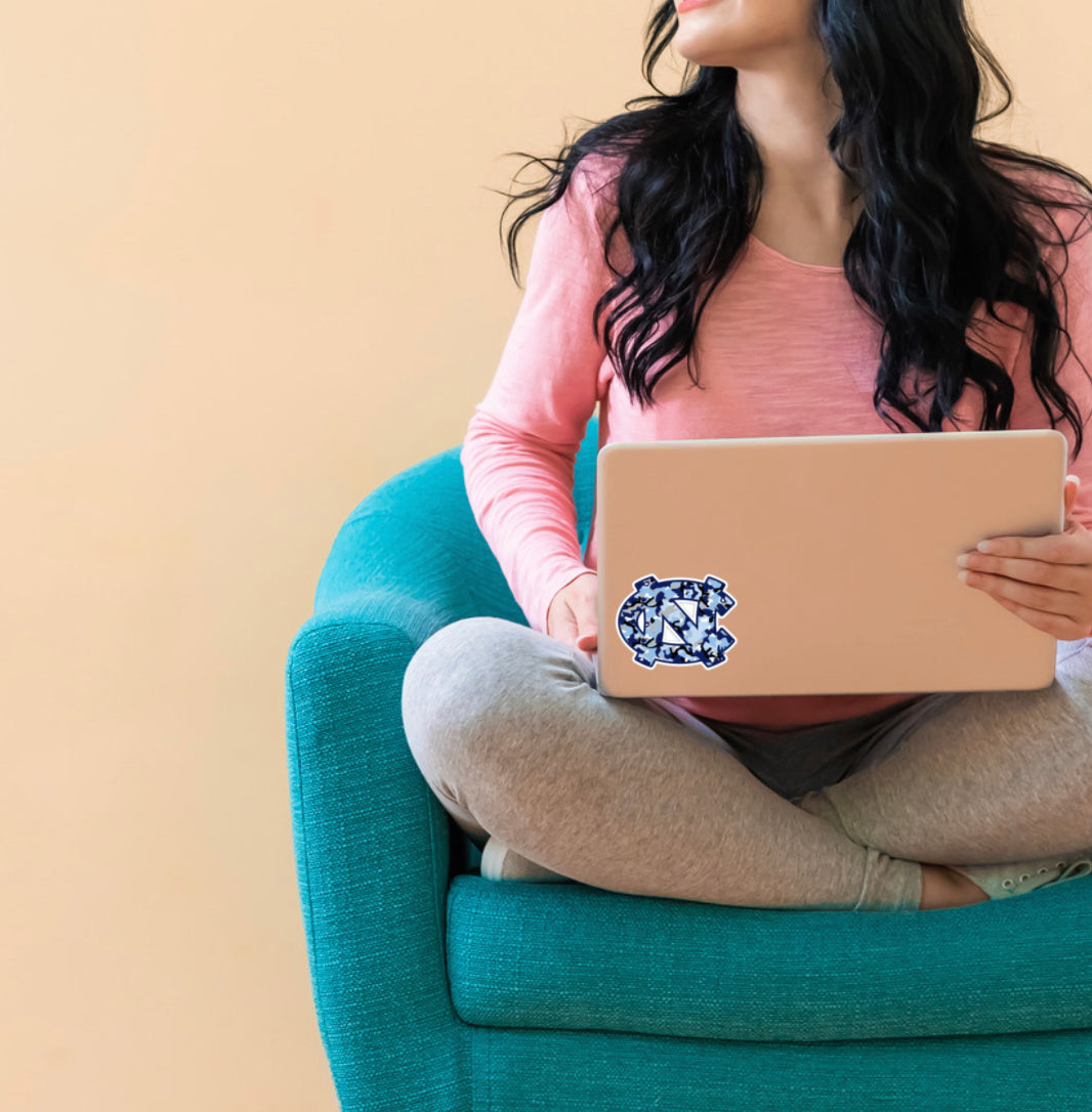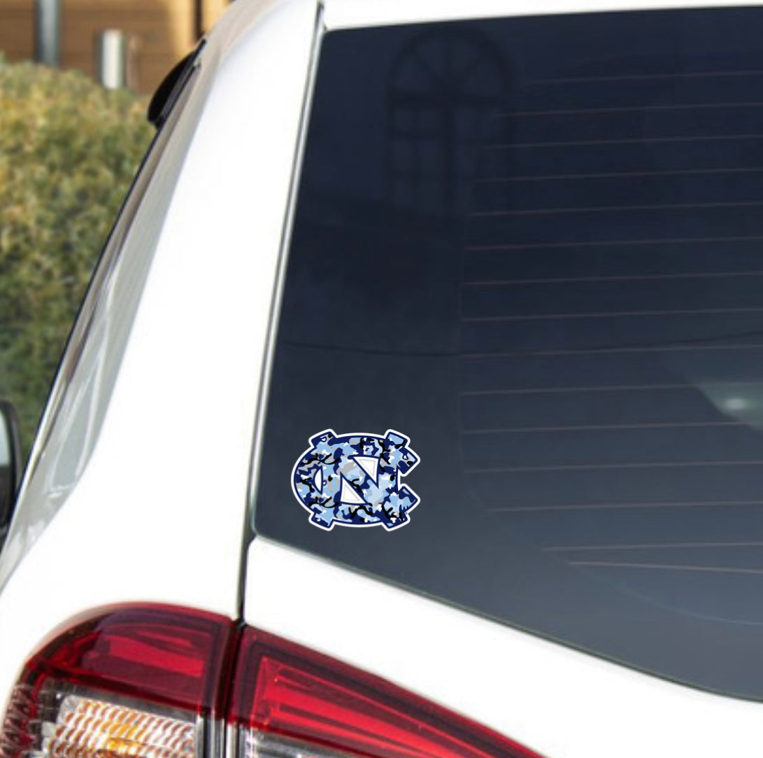 Show your North Carolina Tar Heels spirit everywhere you go with this awesome and versatile UNC logo sticker! In a cool Carolina Blue camo design, this vinyl decal will stand out from your car, laptop, water bottle, anywhere you decide to stick it!