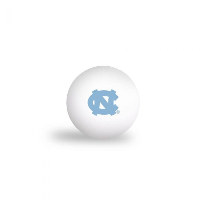 Every standard white ping pong ball has a screen printed Carolina Blue UNC Logo in the middle
