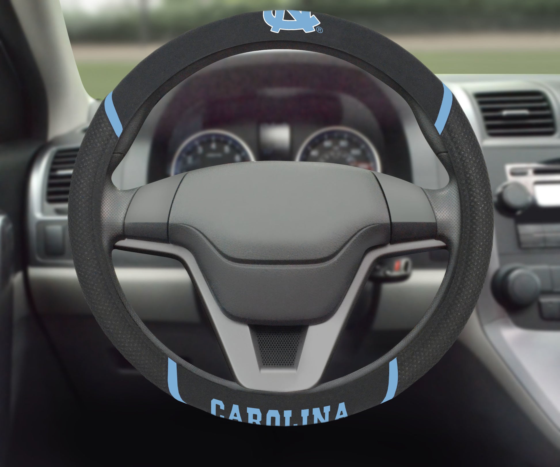 Add a special accent to your drive with a Embroidered Steering Wheel Cover from Sports Licensing Solutions. Our covers are made with a combination of faux suede and fabric mesh they make the perfect accent to any interior. Not only does the suede and mesh add a touch of style, but also gives you extra grip while keeping your hands warm in the winter and cool in the summer. There are 2 logos on the cover the team’s primary logo is embroidered on the top and then teams name is on the bottom. We embroider the logos so that they will not peel or fade after use while driving. With a 15 inch diameter the covers are compatible with most vehicles, just set in the sun to soften the rubber core before installation.