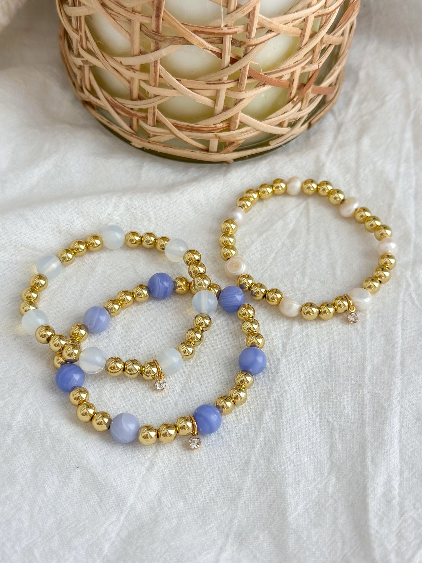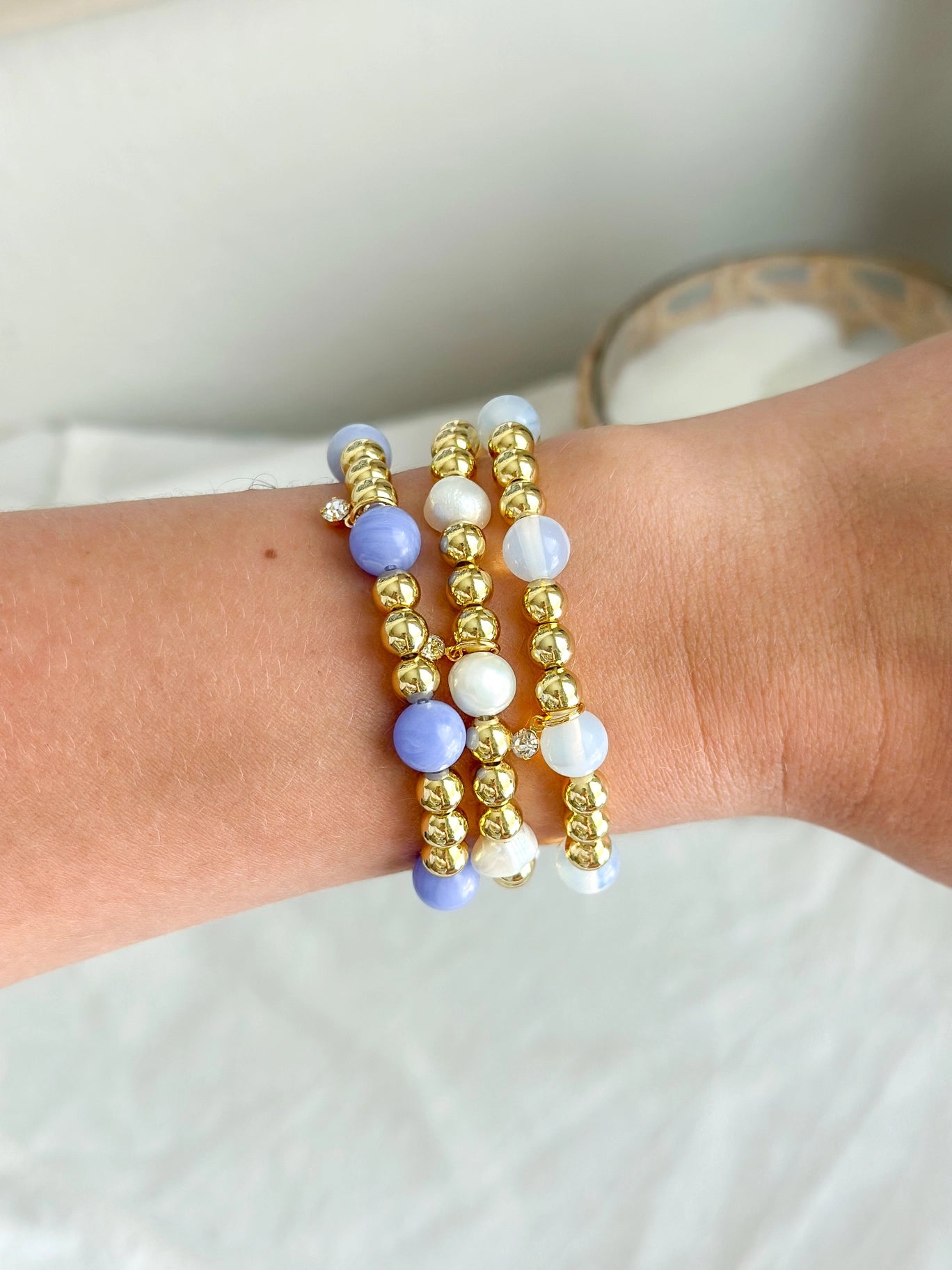 Beaded stretch bracelets are the perfect way to elevate your arm candy. Mix & match for an easy stack! Each relaxed bracelet measure 6.5" with a generous amount of stretch. Made with gemstone beads, freshwater pearls, and durable gold-plated beads, these are the perfect everyday accessory! The gold beads are long-lasting and tarnish-resistant. AnnaBanana jewelry is handmade with care. Each piece is designed in small batches in Raleigh, North Carolina.