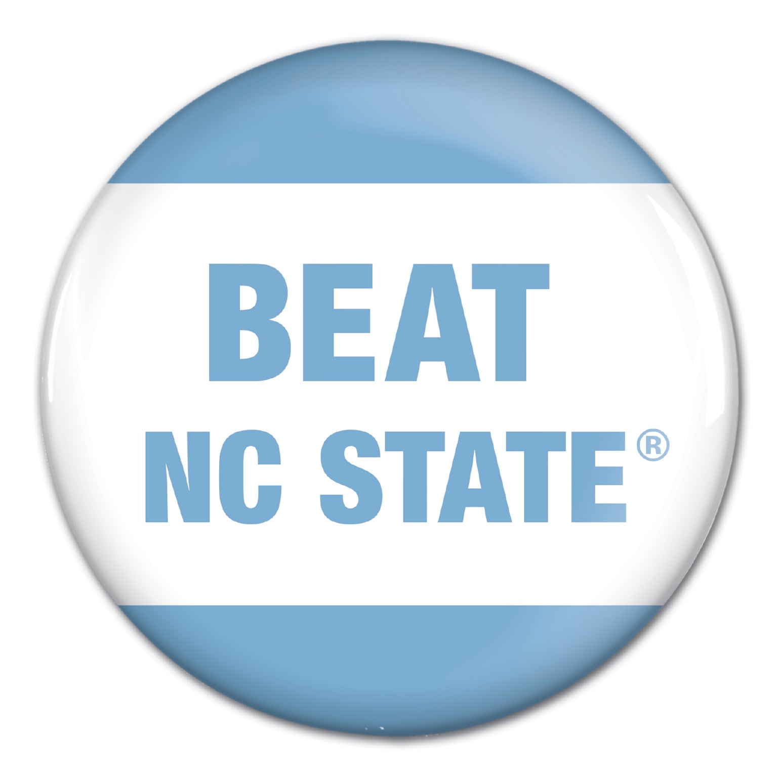 Get ready for game day with this Beat NC State Button! Shrunken Head Boutique in Chapel Hill has all your game day needs. Show off your tar heel spirit by wearing our Beat NC State Button. Go heels!