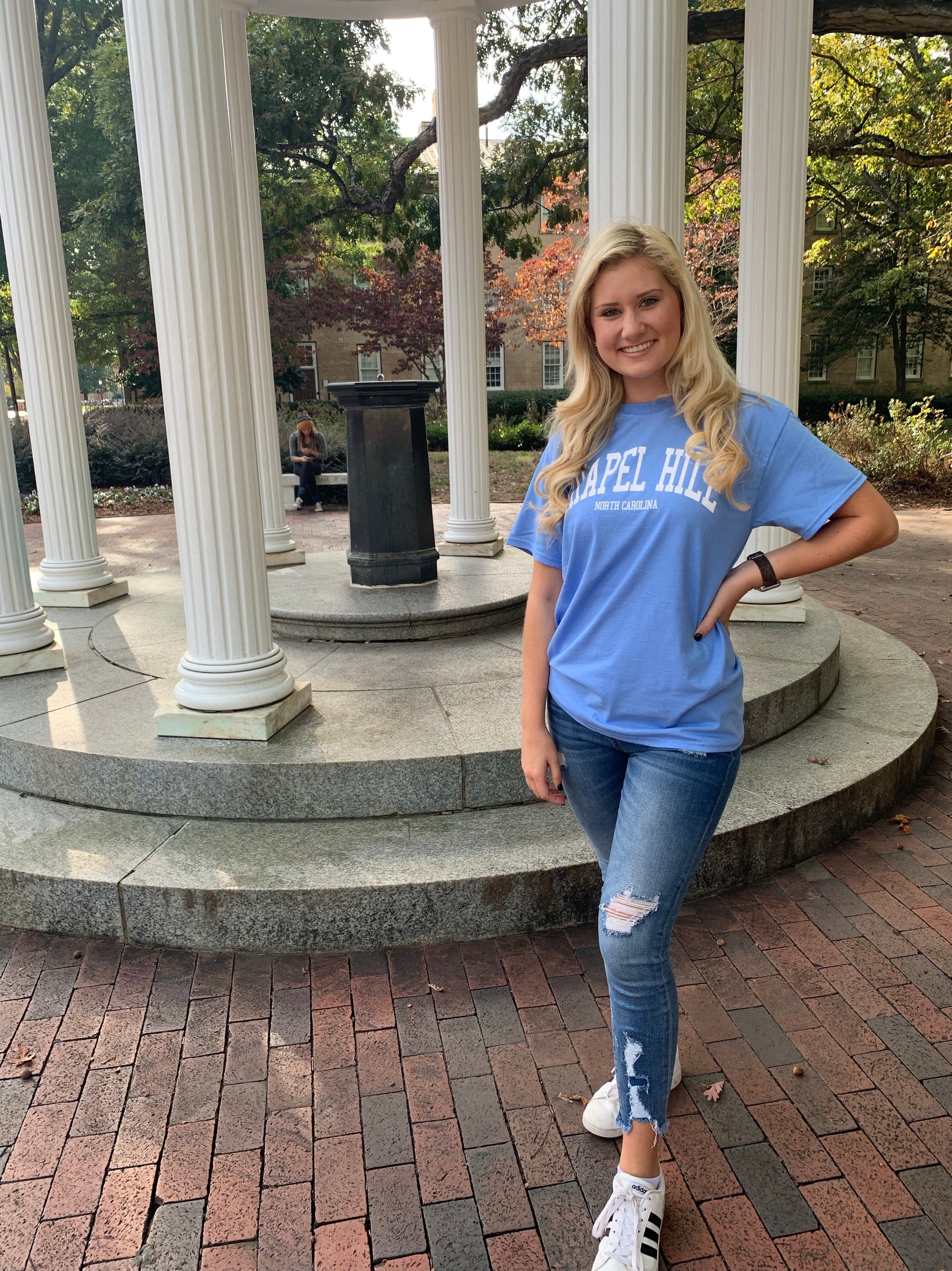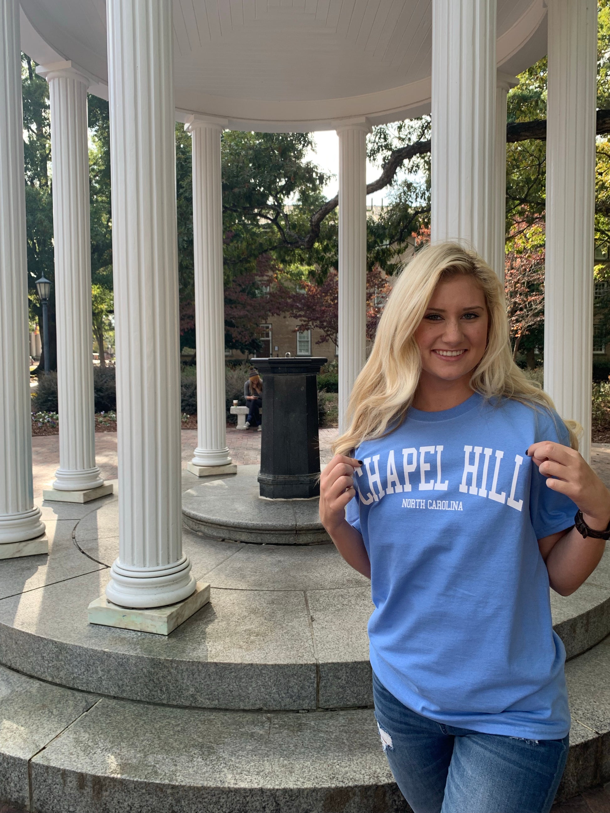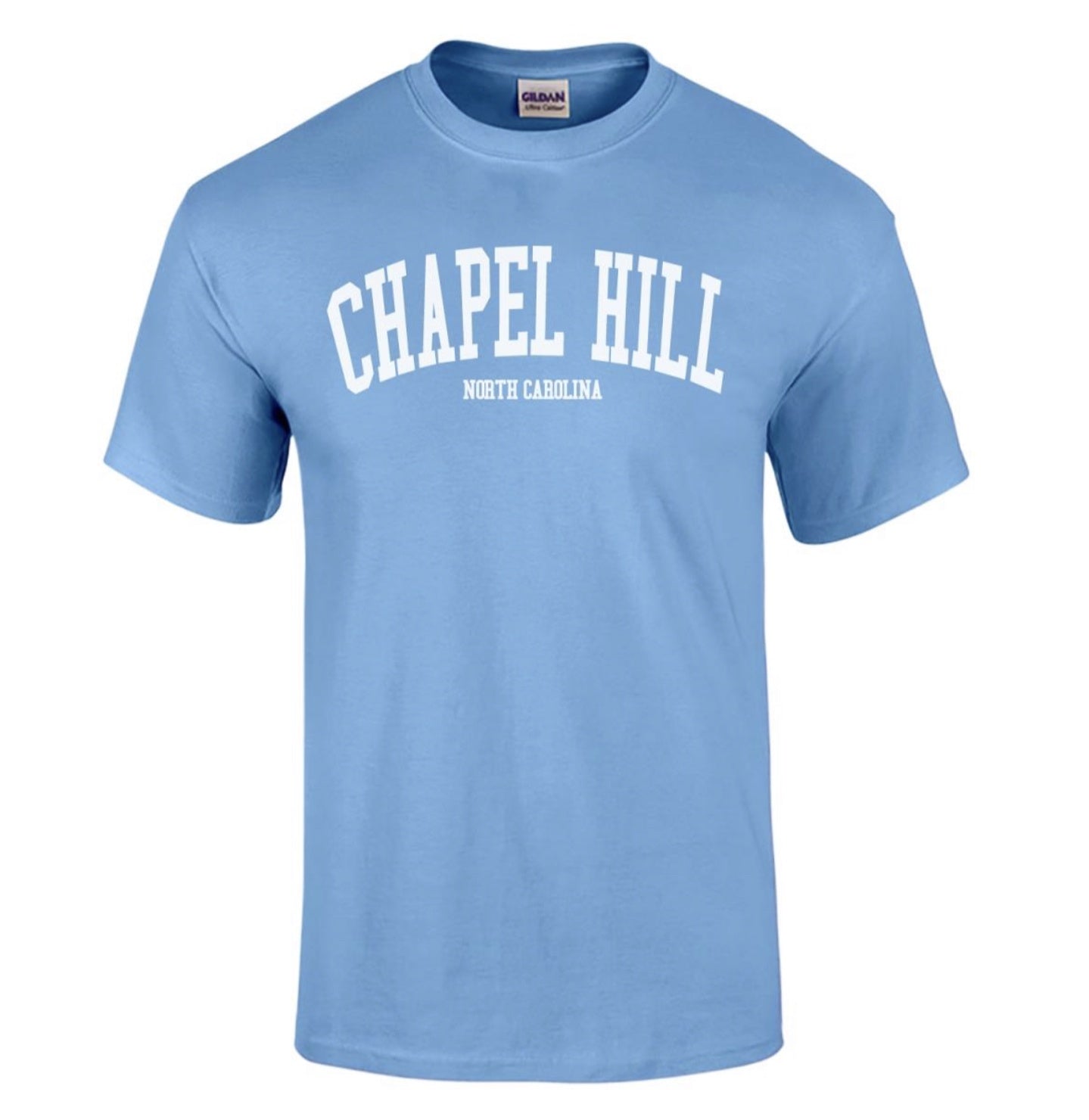 Whether you are Chapel Hill born and bred or just came for a visit, the town of Chapel Hill, NC makes an impression! Show your love for Chapel Hill, North Carolina, home of the Carolina Tar Heels with this awesome Carolina blue Chapel Hill T-shirt designed by the Shrunken Head Boutique to be in retro souvenir t-shirt style! This Carolina Blue Chapel Hill T-shirt is the perfect gift for a friend or souvenir for yourself!