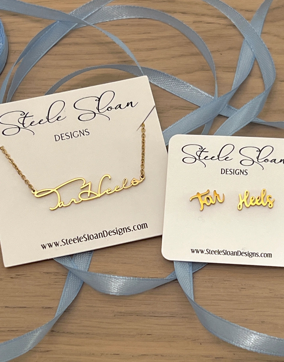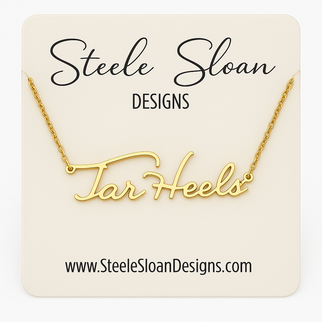 Tar Heels Gold Cursive Necklace by Steele Sloan Designs