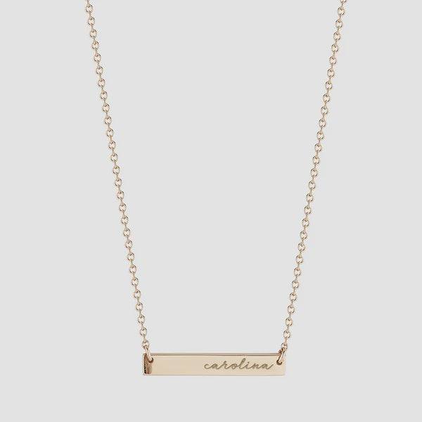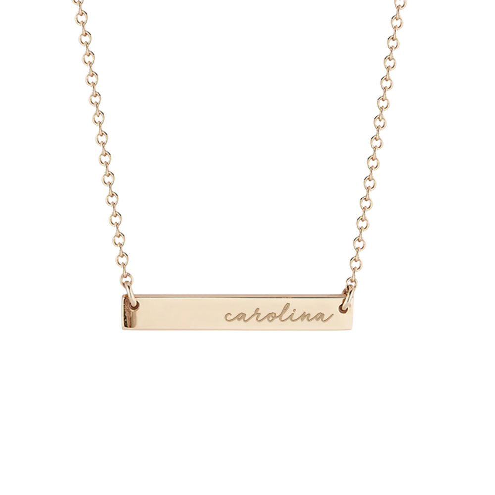 UNC Carolina Cursive Horizontal Bar Necklace in Cavan Gold