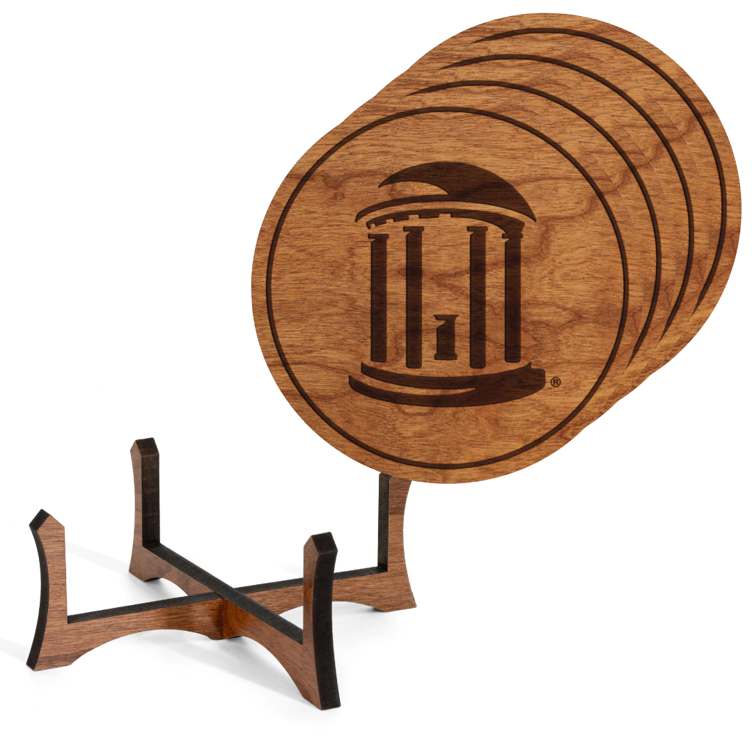 UNC Old Well Wooden Coaster Set of 4 with Stand