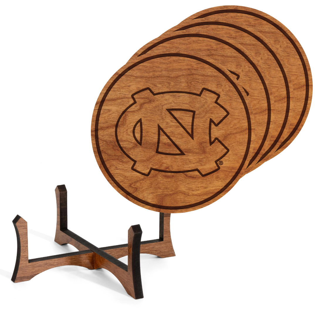 UNC Primary Logo Wooden Coaster Set of 4 with Stand