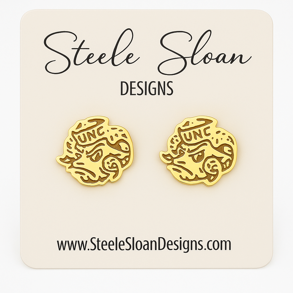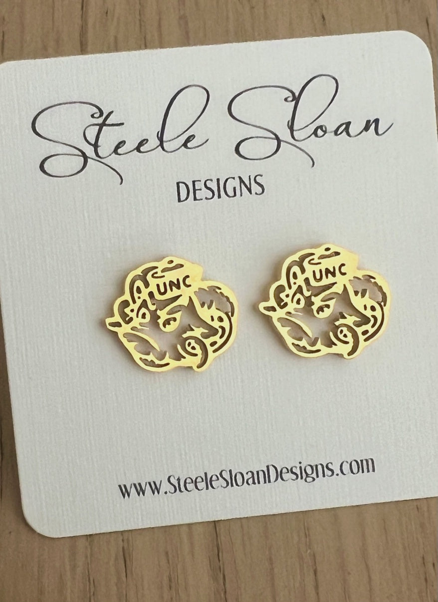 UNC Rameses Gold Stud Earrings by Steele Sloan Designs