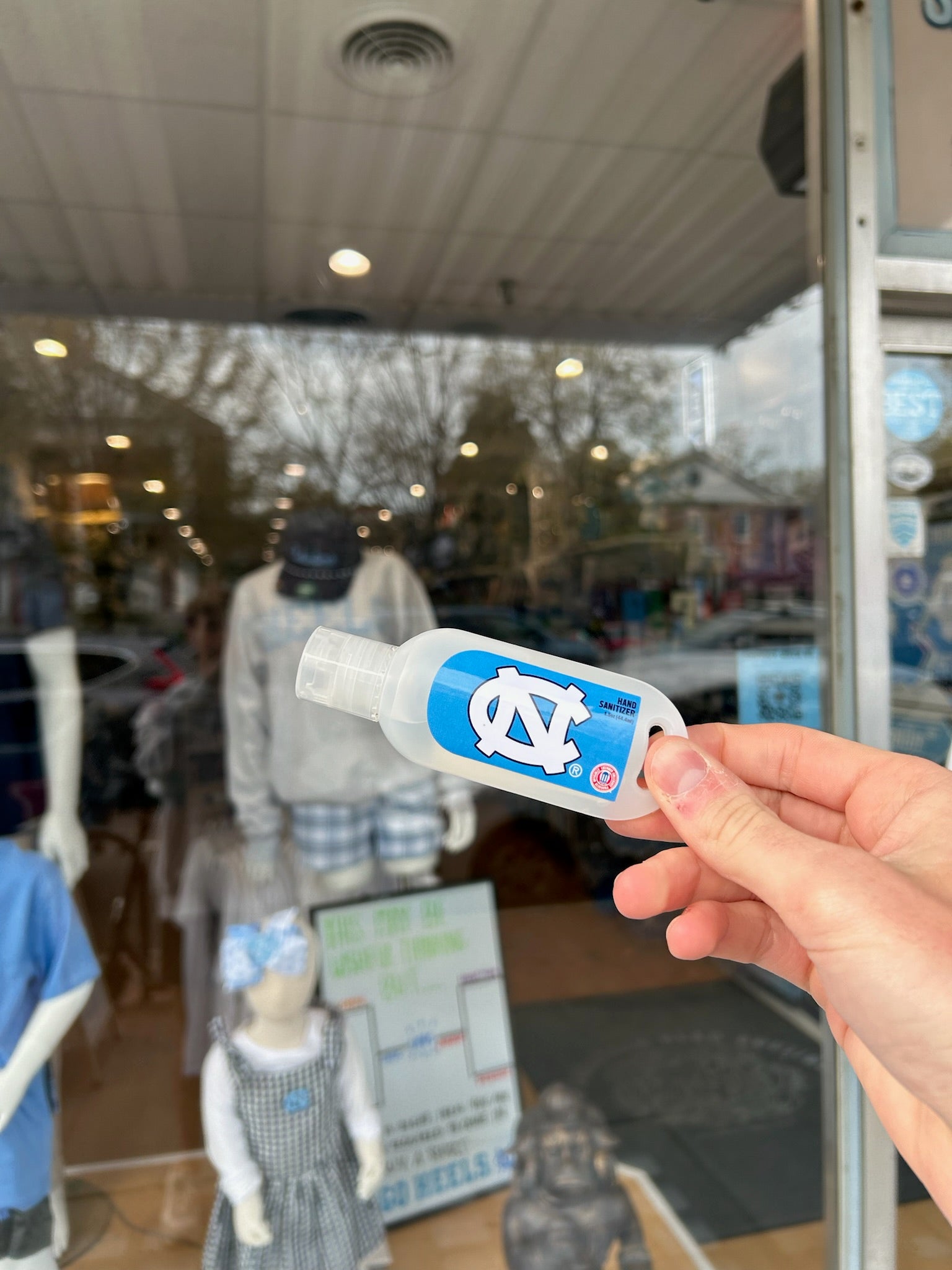 NCAA Officially Licensed UNC Tar Heels personal hand sanitizer with Loop for easy attachment to bags and keys!