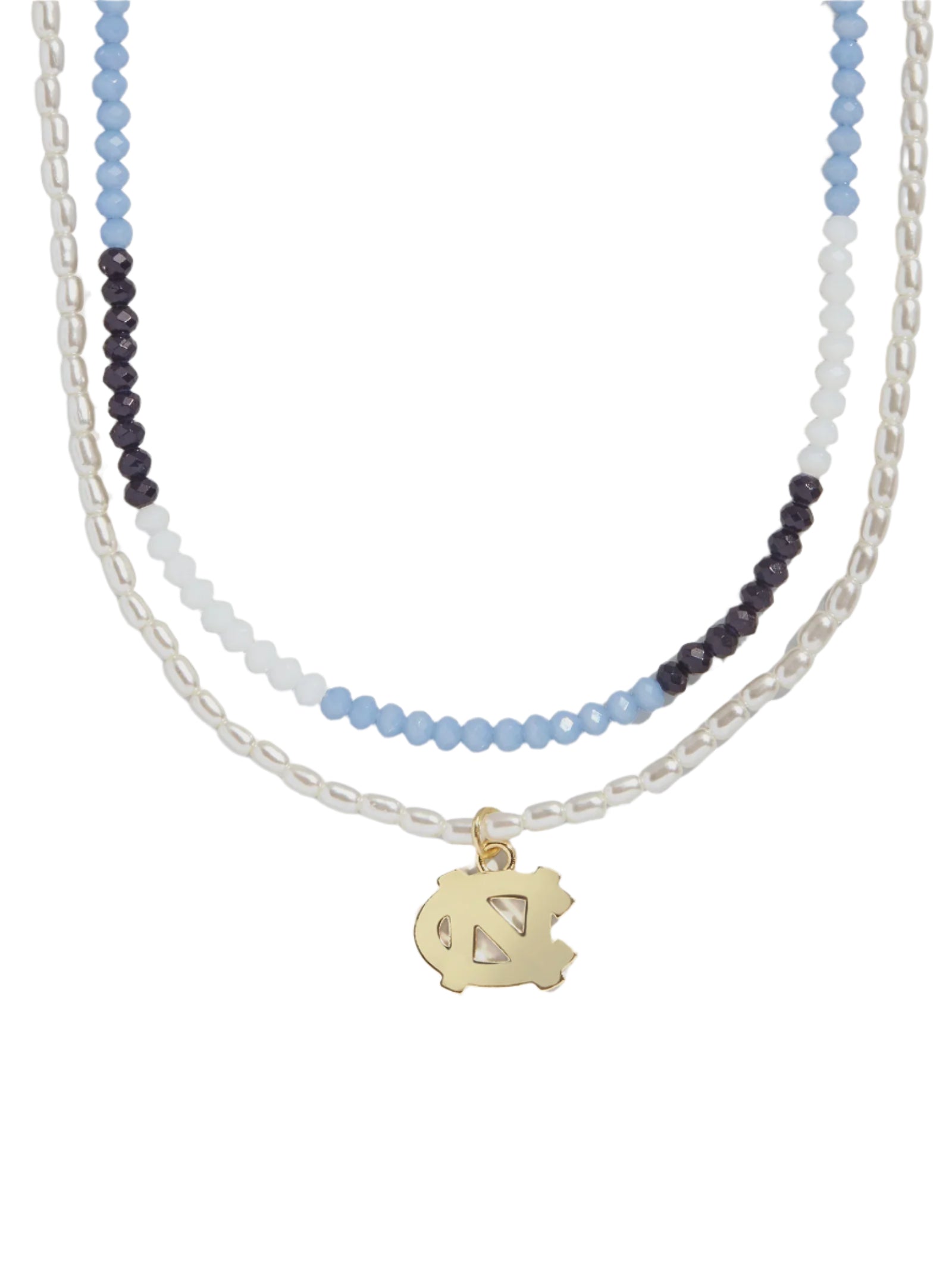- One pearl with a dangling school logo charm and one with glass beads in school colors
