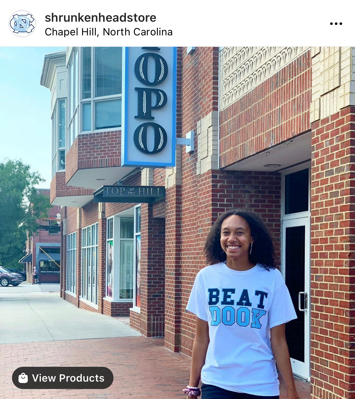 Support Family Owned, Small, and Local business when you shop Shrunken Head. Established on Franklin St in 1969, the Shrunken Head is the oldest standing UNC shop in Chapel Hill and proudly has been serving the Tar Heel Nation for more than 50 years!