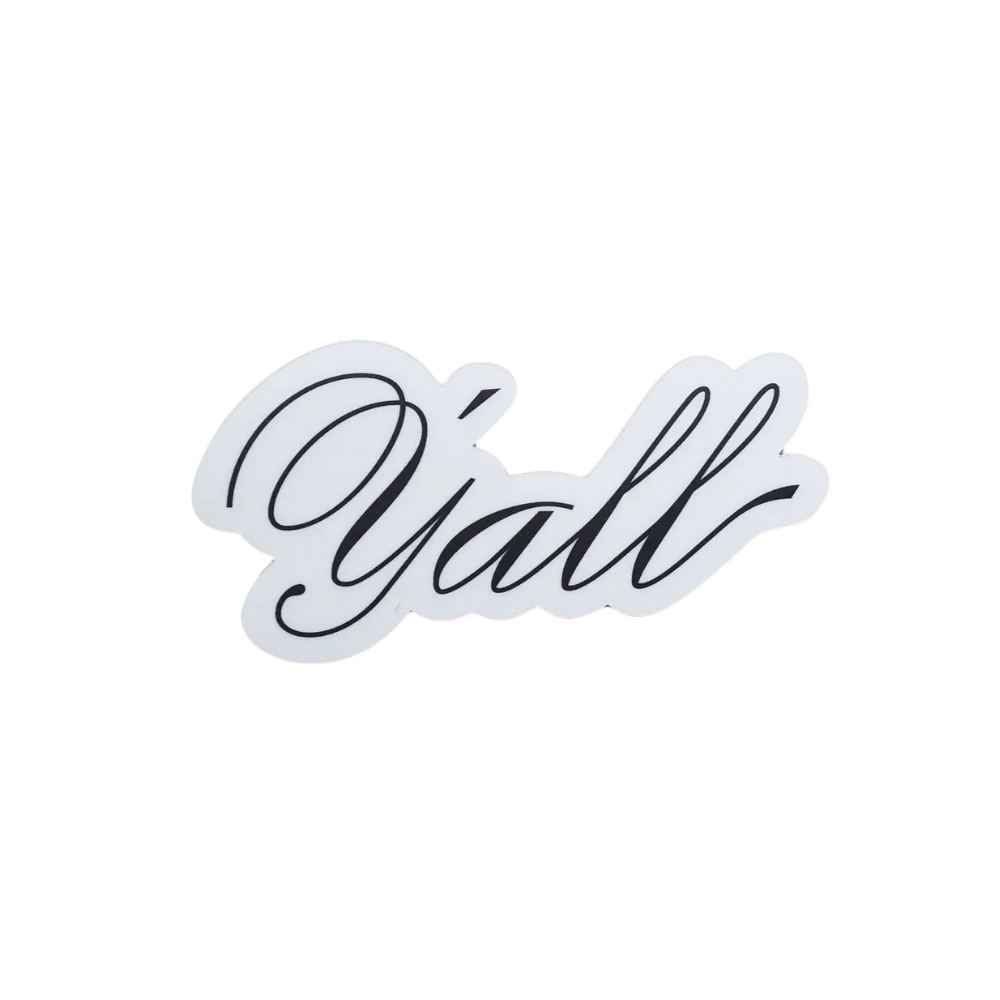 Y'all...it's a classic conjunction that is used daily in Texas, Florida, Georgia, Alabama, Louisiana, the Carolinas, & the rest of the South. Celebrate your southern accent with a cute typography sticker. Whether you're from the deep South, Appalachia, or you just appreciate classic southern sayings, you'll love this script font Y'all sticker.