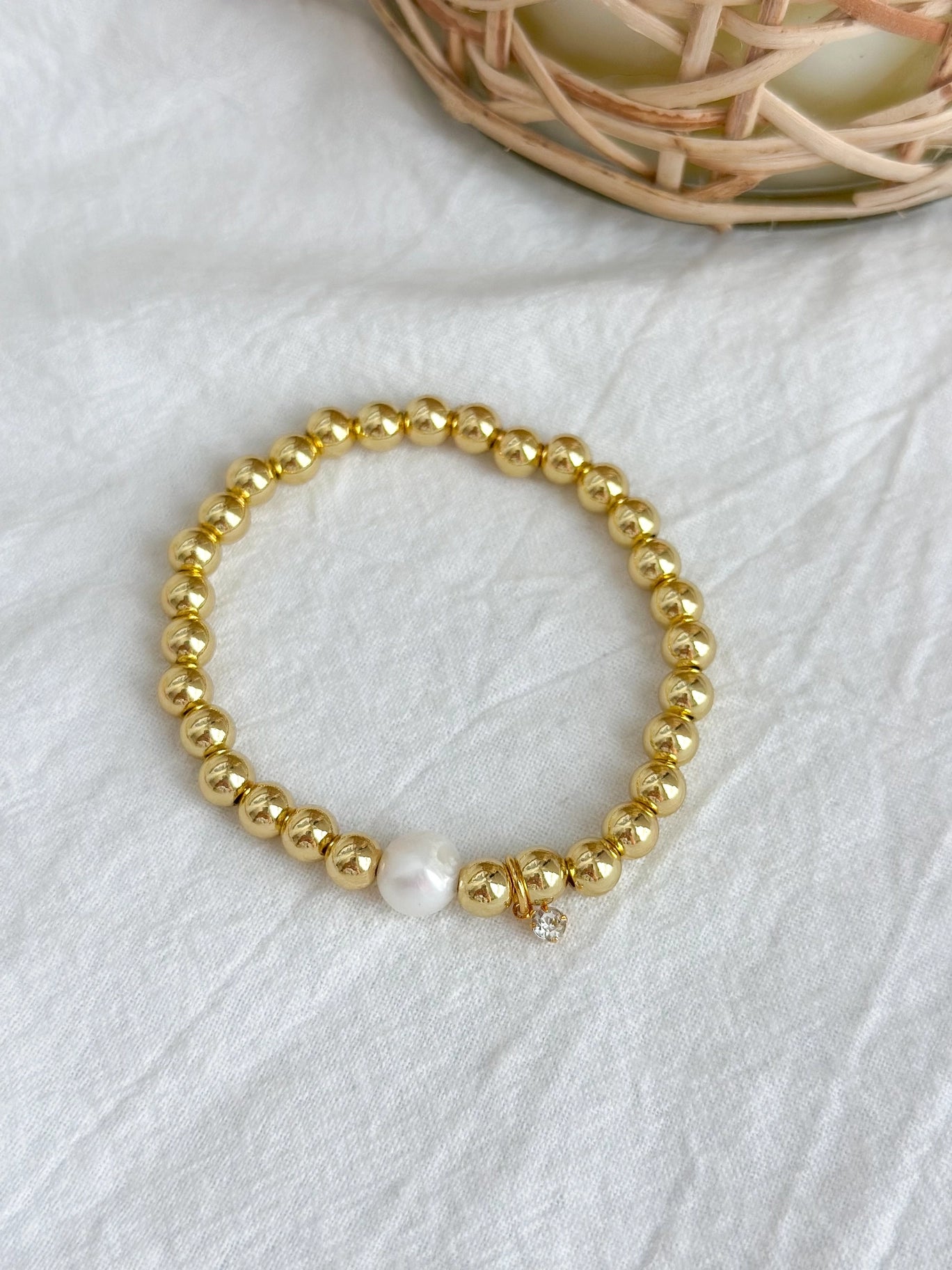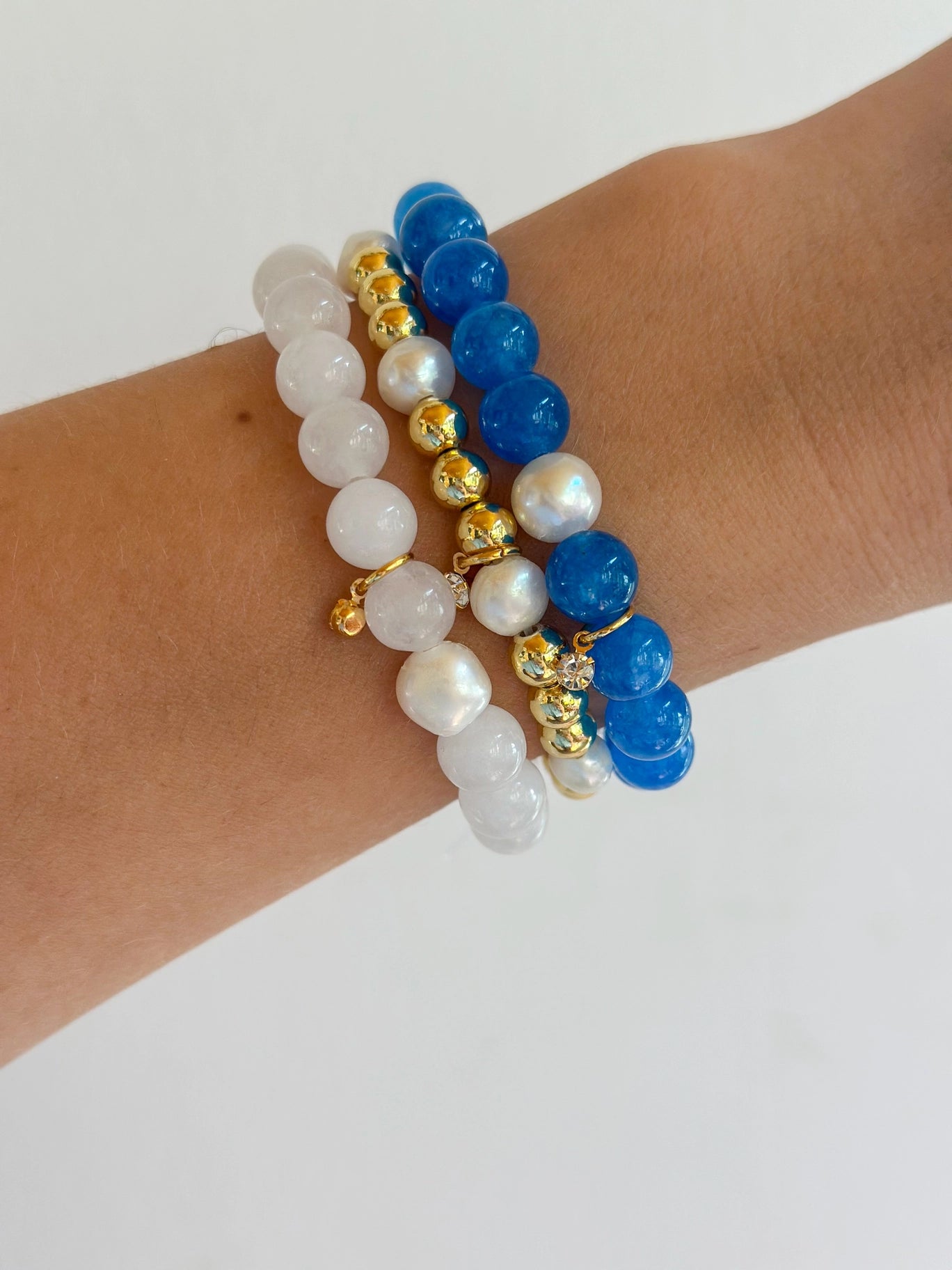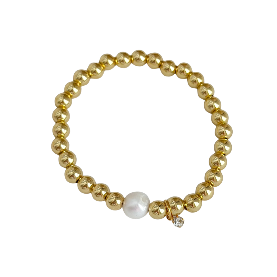 Beaded stretch bracelets are the perfect way to elevate your arm candy. Mix & match for an easy stack! Each relaxed bracelet measure 6.5" with a generous amount of stretch. Made with gemstone beads, freshwater pearls, and durable gold-plated beads, these are the perfect everyday accessory! The gold beads are long-lasting and tarnish-resistant. AnnaBanana jewelry is handmade with care. Each piece is designed in small batches in Raleigh, North Carolina.